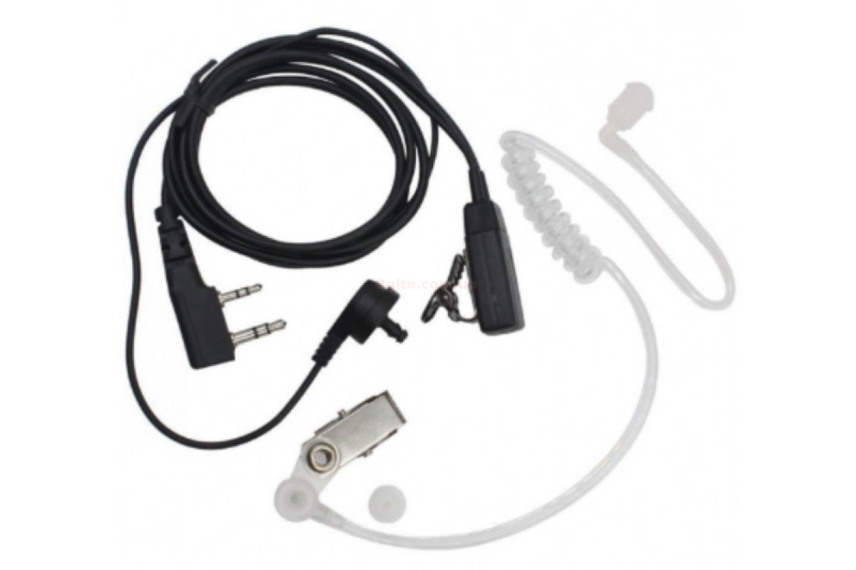 Незаметный наушник с воздушным каналом и микрофоном на клипсе. Быстрый выход в эфир одной кнопкой. Работает с рациями на разъеме Kenwood K.