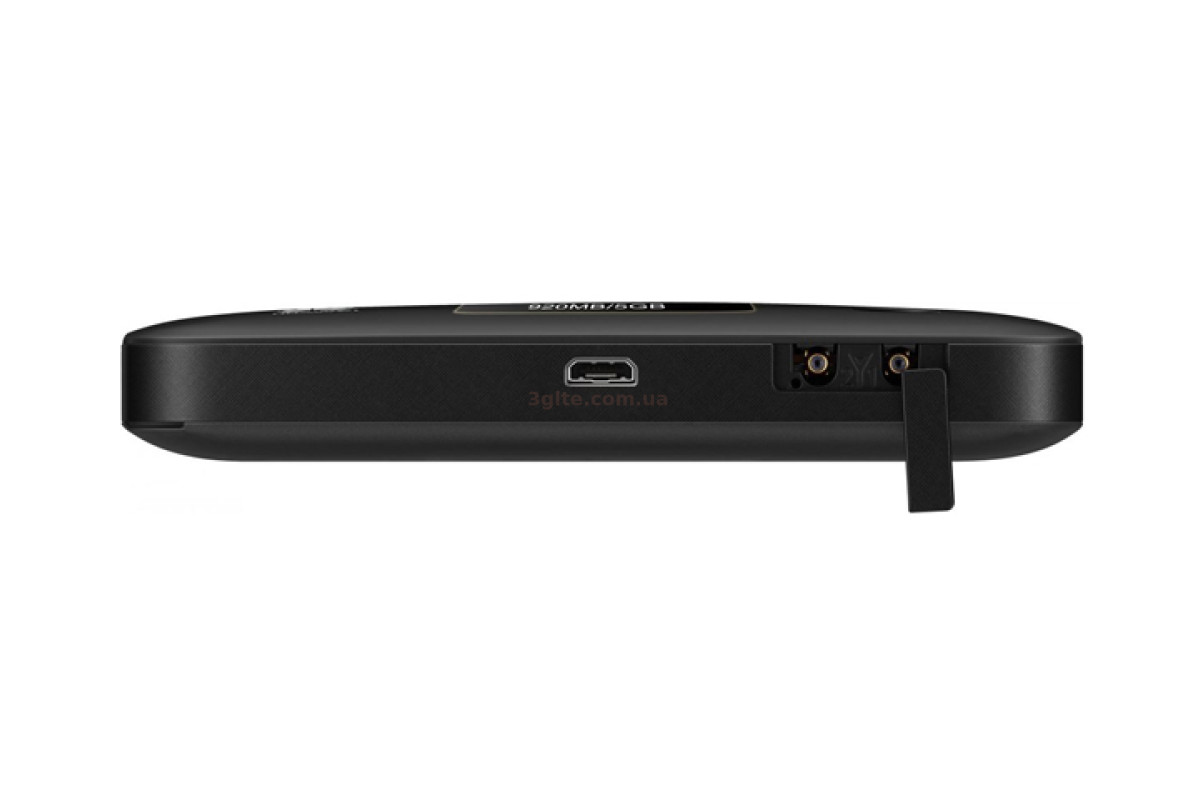 4G роутер Huawei E5785 - небольшой, компактный, легкий, помещается в кармане брюк или рубашки, его можно везде брать с собою. Корпус выполнен из качественного глянцевого пластика, черного цвета. На лицевой части находится большой дисплей, на котором отображается подробная информация об устройстве, и меню дополнительных настроек и кнопка включения. Под задней крышкой находится батарея, под ней расположены слот для SIM-карты и второй слот для карты памяти. Сбоку расположен антенный разъем и гнездо для зарядки формата MicroUSB.